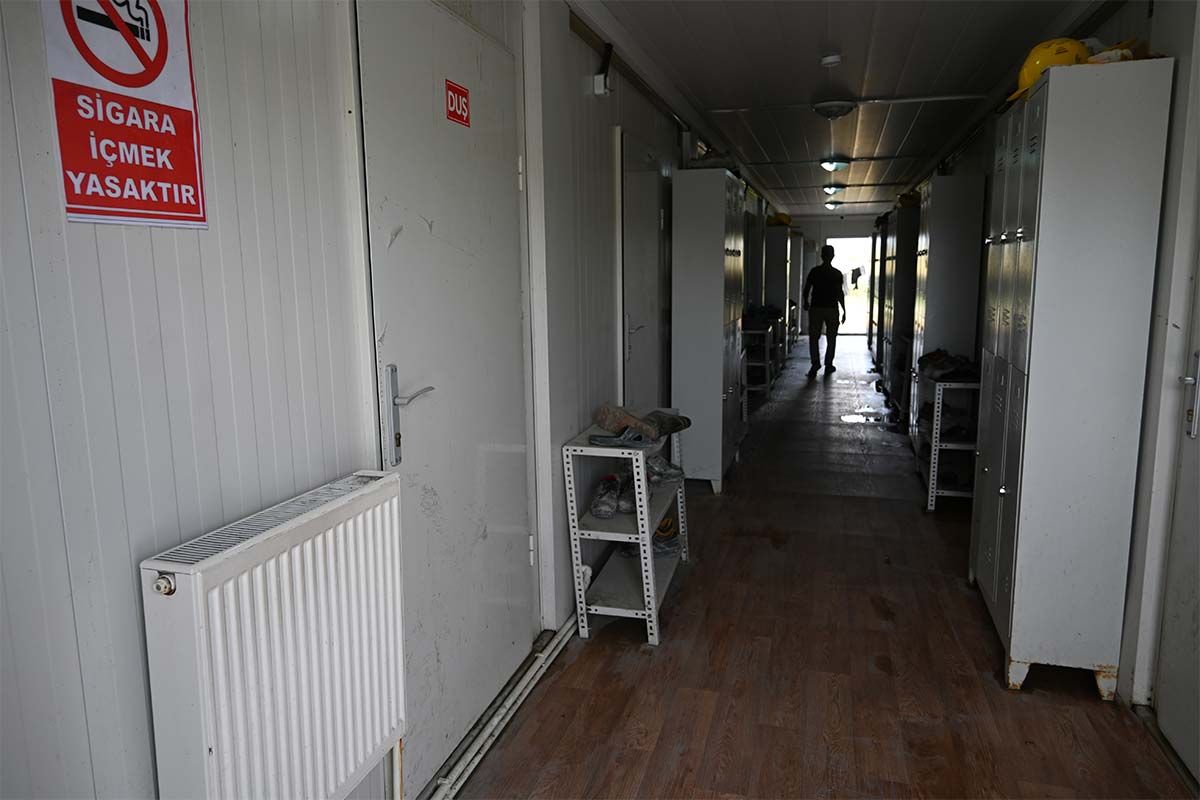 Üç katlı şantiye bloklarının boydan boya uzanan ara koridorları çift taraftan da dışarı açılabiliyor. Çift yöndeki çıkışlar yangın merdiveni olarak da işlev görüyor.